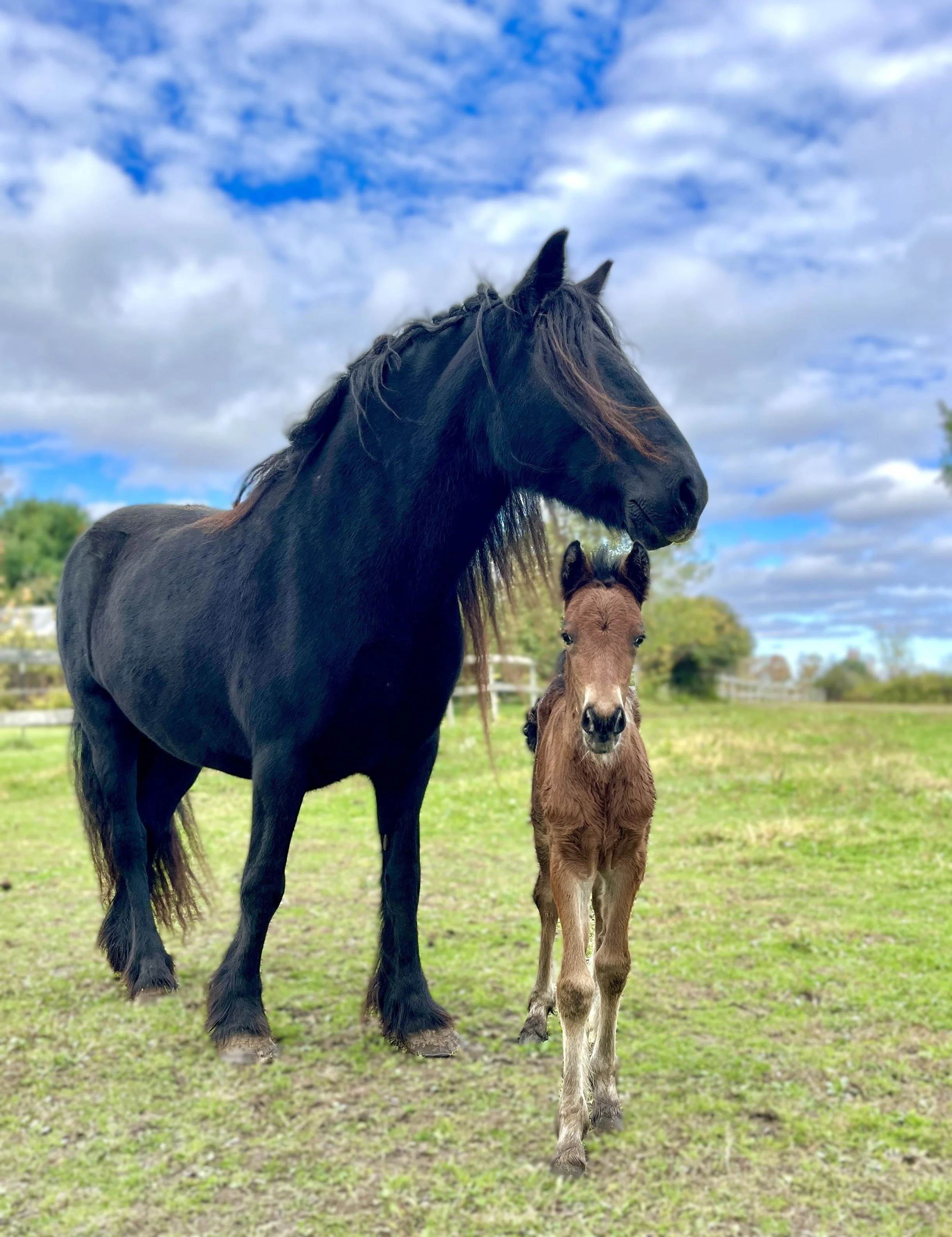 This absolutely stunning filly will be arriving in New York soon! Seriously put together and a true inky black, she’s setting the bar high. Just look at those furry boots! Brought along thus far with care, she’s a true credit to the Smithills Stud.
